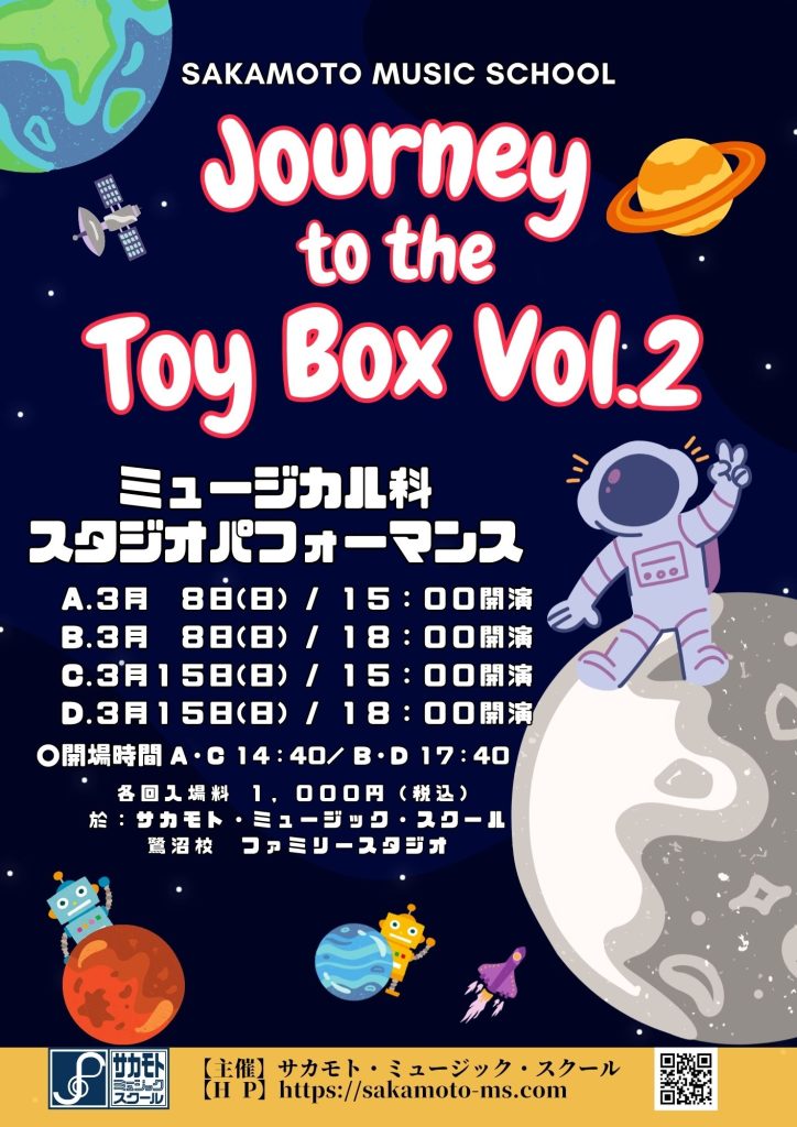 サカモト・ミュージック・スクールのミュージカル科による スタジオパフォーマンス「Journey to the Toy Box vol.2」を開催いたします。